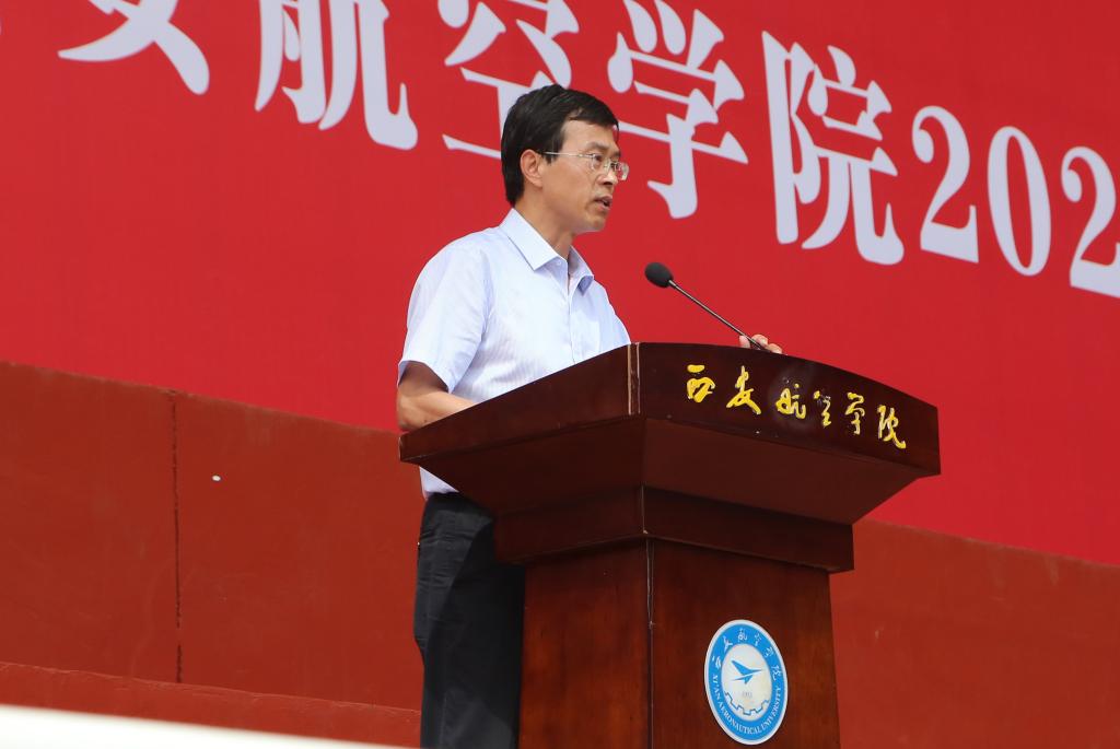学校领导在讲话中向新生的到来表示热烈欢迎,向承训部队全体教官表示衷心感谢,要求同学们在训练的过程中要积极弘扬伟大的抗疫精神、抗战精神,学习人民军队英雄本色,争做新时代弄潮儿,并对全体参训学生提出了三点希望:一是要在常态化疫情防控的情况下高质量完成军训任务。在参训过程中听从指挥、服从纪律,学会合作、真诚谦让,互相帮助、互相关爱。二是要在思想上对军训高度重视。学习解放军热爱祖国、忠于人民、艰苦奋斗、勇于奉献、顽强拼搏的精神,并把所学到的优良品德和作风贯穿在今后的学习、生活中。三是要在行动上严守纪律,强化作风,发扬西航精神。通过军容风纪评比、队列会操评比、航空报国英模事迹报告会等丰富多彩的军训文化活动,将塑形与塑魂相结合,训家国情怀、训战斗精神、训责任担当,让红色基因融入血脉、获得茁壮成长。
