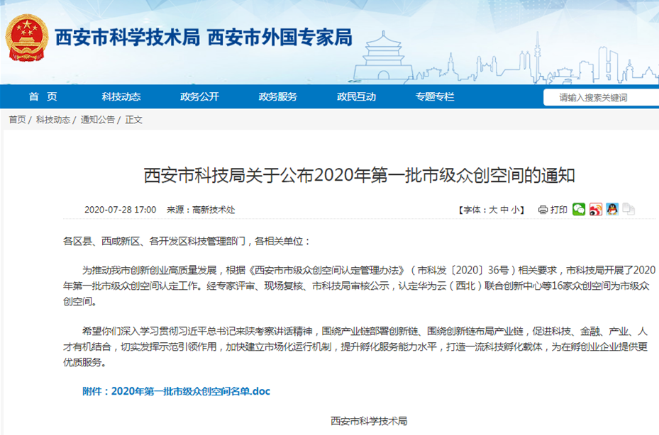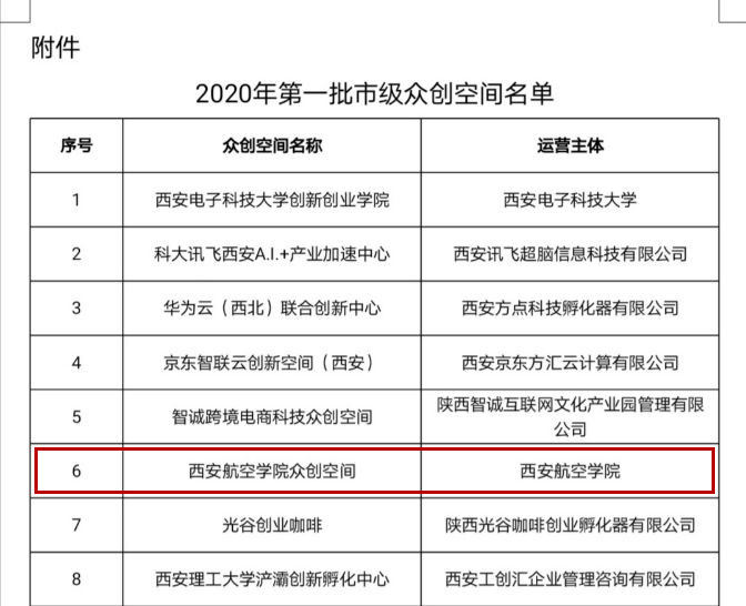 近日,西安市科技局公布了2020年第一批市级众创空间入选名单,贝博官网“艾弗森贝博ballbet官网众创空间”等16家众创空间成功入选。