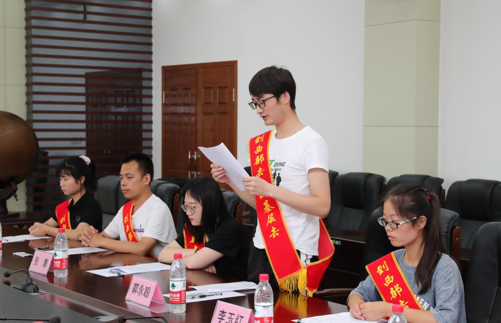 经济管理学院郭永盼同学代表7名西部志愿者发出倡议:要牢记习近平总书记回信中国石油大学时的殷切期望,积极传承西迁老教授“打起背包再出发”的西迁精神,带上知识与才干,牢记母校谆谆教诲,秉持“德能日新,刚健有为”校训,全力履行服务职责,为建设美好西部和繁荣祖国贡献青春力量!