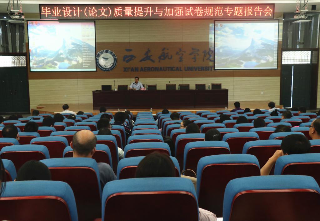 为进一步提升贝博官网本科毕业设计(论文)质量,加强试卷规范管理,助力本科教学工作合格评估,5月29日下午,教务处、教学质量监控与评价处邀请王晓瑜教授、徐行研究员分别代表学校毕业设计(论文)检查组和试卷检查组就提升毕业设计(论文)质量和加强试卷规范在阎良校区报告厅做专题讲座。副校长宋文学,教务处、教学质量监控与评价处、各二级学院(部)负责人、综合管理办公室主任、教研室主任、专业负责人、骨干教师、教学秘书等200余人参加讲座。讲座由教务处处长米国际主持。