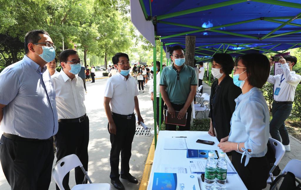 党委书记陈平社、校长曹庆年、党委副书记刘谦来到招聘现场,与用人单位深入交流、了解岗位需求、交换人才培养意见、推荐贝博官网毕业生就业。学校领导诚挚感谢用人单位多年来对学校就业工作的支持,希望各用人单位积极关注贝博官网毕业生,加大在贝博官网的人才招聘力度。企业领导纷纷表示,本次来校招聘,也是他们疫情以来首次参加线下校园招聘活动,艾弗森贝博ballbet官网能在做好疫情防控的前提下,积极组织学生返校复学,并及时搭建平台,邀请企业进校,有序开展线下招聘,充分体现出学校对毕业生就业工作的高度重视,也是对企业复工复产的有力支持。