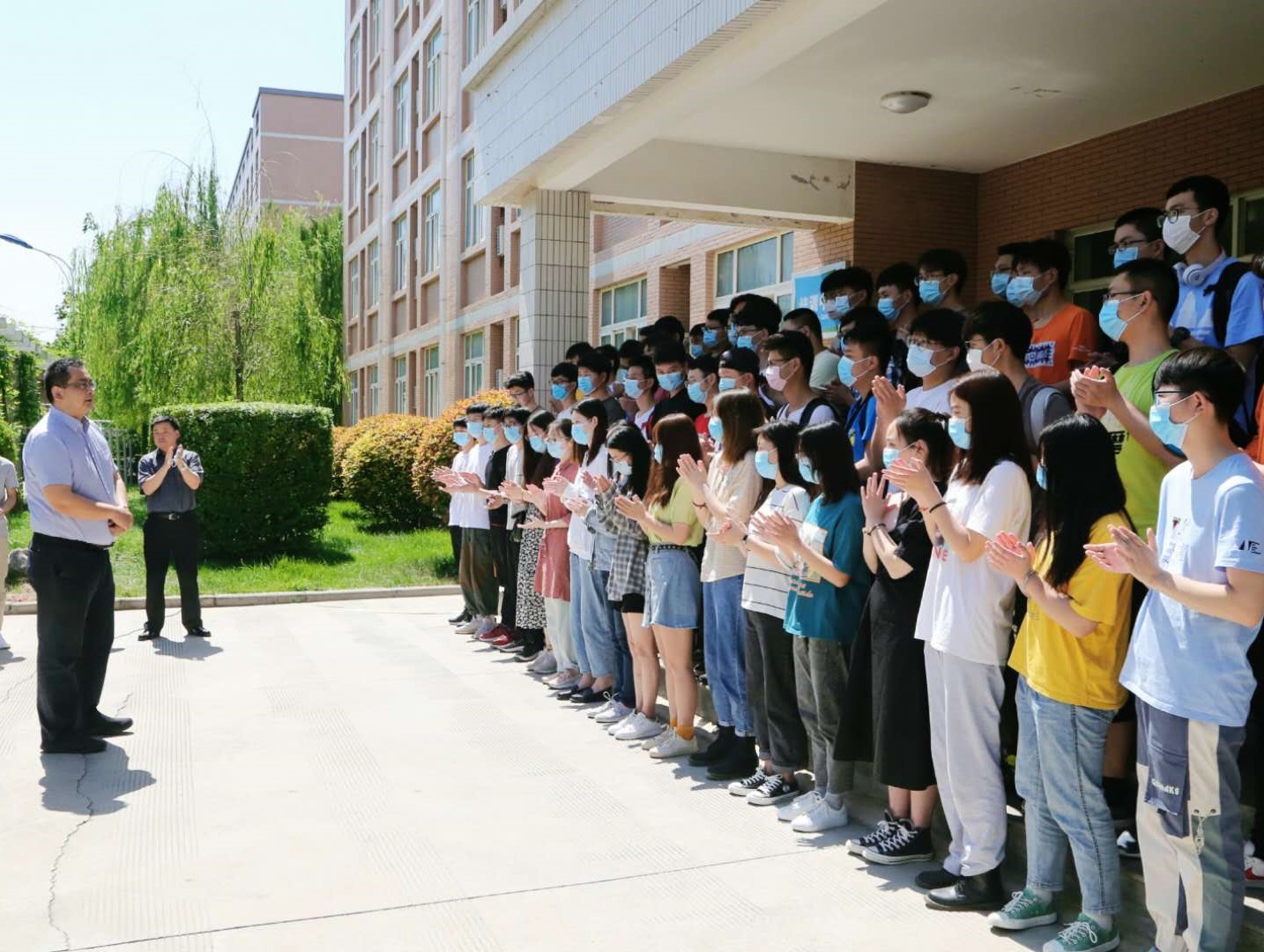 刘谦在讲话中表示,百年不遇的疫情,让同学们在家度过了漫长的封闭生活。返校后,大家在隔离期间,遵守纪律,听从指挥,服从管理,积极锻炼,认真学习,阳光生活,为学校复学复课后各项工作有序进行做出了牺牲和贡献,他代表学校对大家表示感谢!他指出,两次核酸检测的结果合格已经给大家打下了强心针,证明大家的身体无比健康。希望同学们尽快地融入正常的校园生活,努力学习,不负韶华,顺利完成本学期所有的学业课程。
