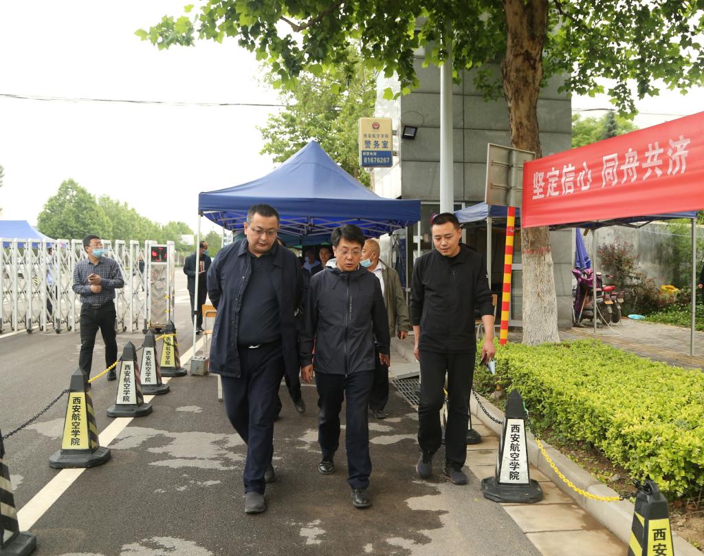 5月13日上午,校长曹庆年、校党委副书记刘谦、副校长李季带队检查指导阎良校区学生返校前疫情防控和开学准备工作。相关职能部门负责人和各二级学院党总支书记参加了检查工作。