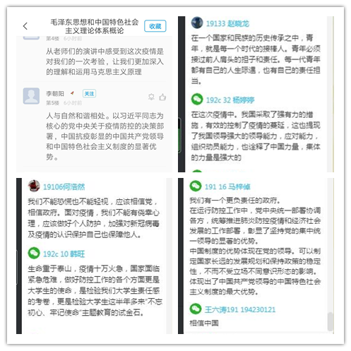 本次教学活动贝博官网共有一万两千余名师生观看,两百多个班级在观看后进行了热烈的在线讨论。大家纷纷表示,此次“思政大课”主题鲜明、内容丰富、逻辑严谨,贴近师生心声,是一场高水平的不可多得的思政课,令人耳目一新,在全校范围内凝聚起最终打赢疫情防控阻击战的必胜信念,在广大师生心中再一次高扬起中国特色社会主义制度强大的生命力和无比的优越性。下一步,学校将进一步深入学习宣传课程内容,紧密联系师生思想实际,通过自主学习、专家辅导、座谈会、研讨交流会等多种形式进行学习研讨,增强学习效果和质量,引导大学生传承和弘扬爱国主义精神,做拥护党、坚定走中国特色社会主义道路的“四有新人”。
