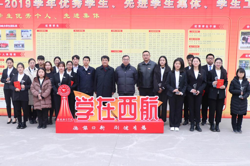 颁奖典礼前播放了展现2019年学校青年学生在思想宣传、资助帮扶、心理育人、社会实践、文体活动、志愿服务、双创比赛等各类舞台上的青春风采的专题视频——《学在西航》。