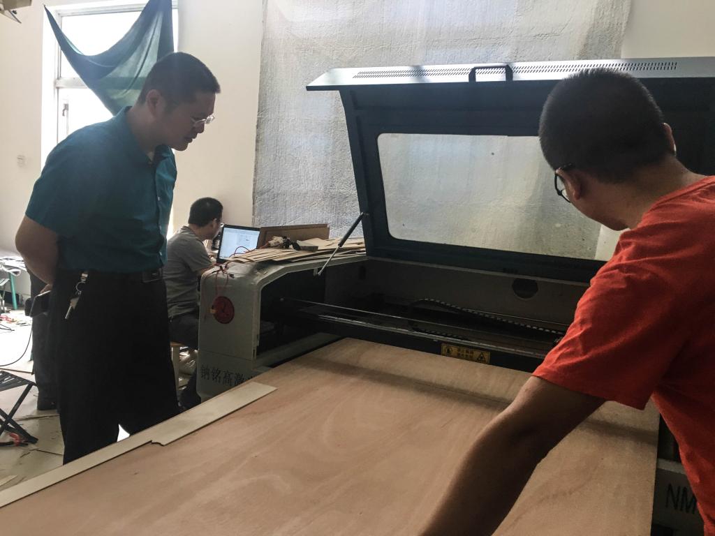 第一块板材切割现场