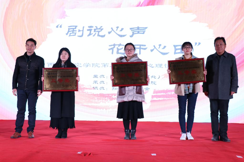 经过三个小时的比拼,最终能源与建筑学院《起航》和材料工程学院《巧克力味的青春》荣获本次校园心理情景剧大赛一等奖,士官学院《平凡》、机械工程学院《搁浅,起航》和理学院《愿所有人的青春都温柔以待》获得二等奖,计算机学院《和谐友爱301》、电子工程学院的《陌上转身》和外国语学院《真实的自己》分获三等奖。