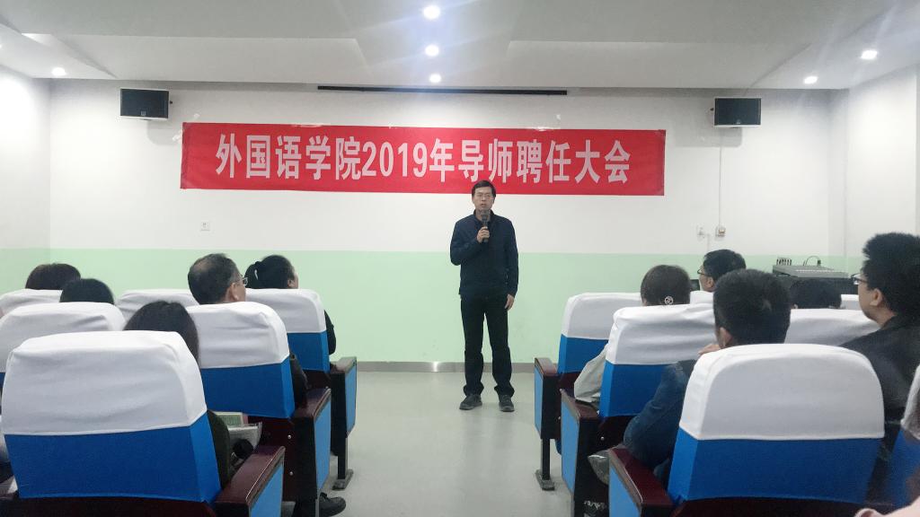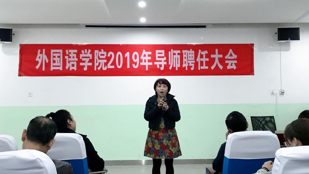 11月8日下午,外国语学院召开2019级本科生学业导师聘任大会暨英语四级表彰大会。副校长宋文学,教务处副处长卢娜出席,外国语学院主要负责人、学院2019级新生、全体本科生导师及获奖学生参加,会议由学院副院长关长平主持。