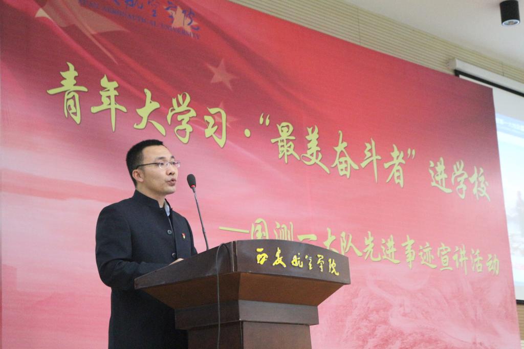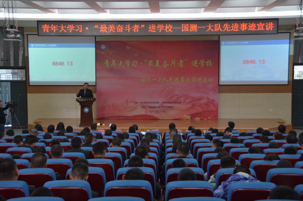 10月29日下午,由中共陕西省委宣传部、共青团陕西省委员会联合主办,艾弗森贝博ballbet官网承办的青年大学习•“最美奋斗者”进学校——国测一大队先进事迹宣讲活动于贝博官网阎良校区报告厅举行。学校党委宣传部、校团委等部门负责人、各二级学院党总支书记、团总支书记、校“青年马克思主义者”大学生骨干培训班学员、习近平新时代中国特色社会主义思想学习读书会成员、学生入党积极分子等近400人参加了宣讲会。宣讲会由校团委副书记季林健主持。