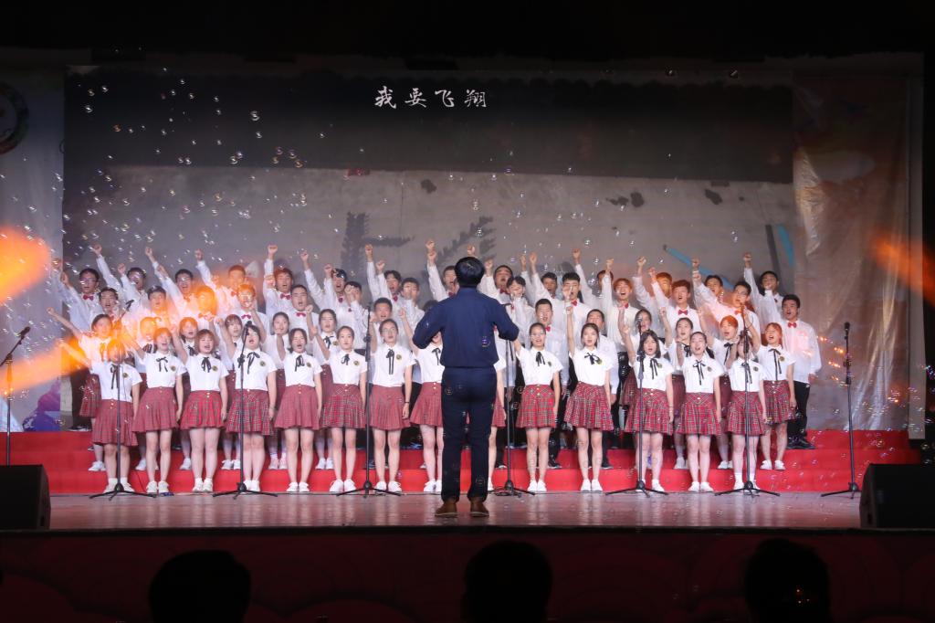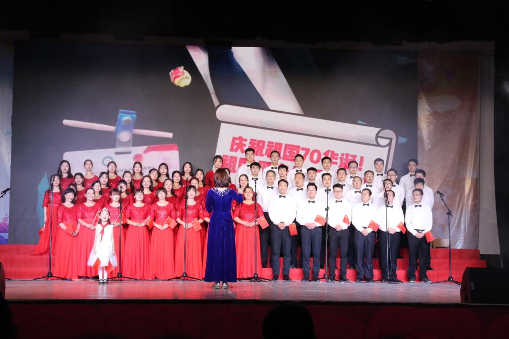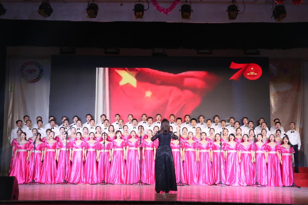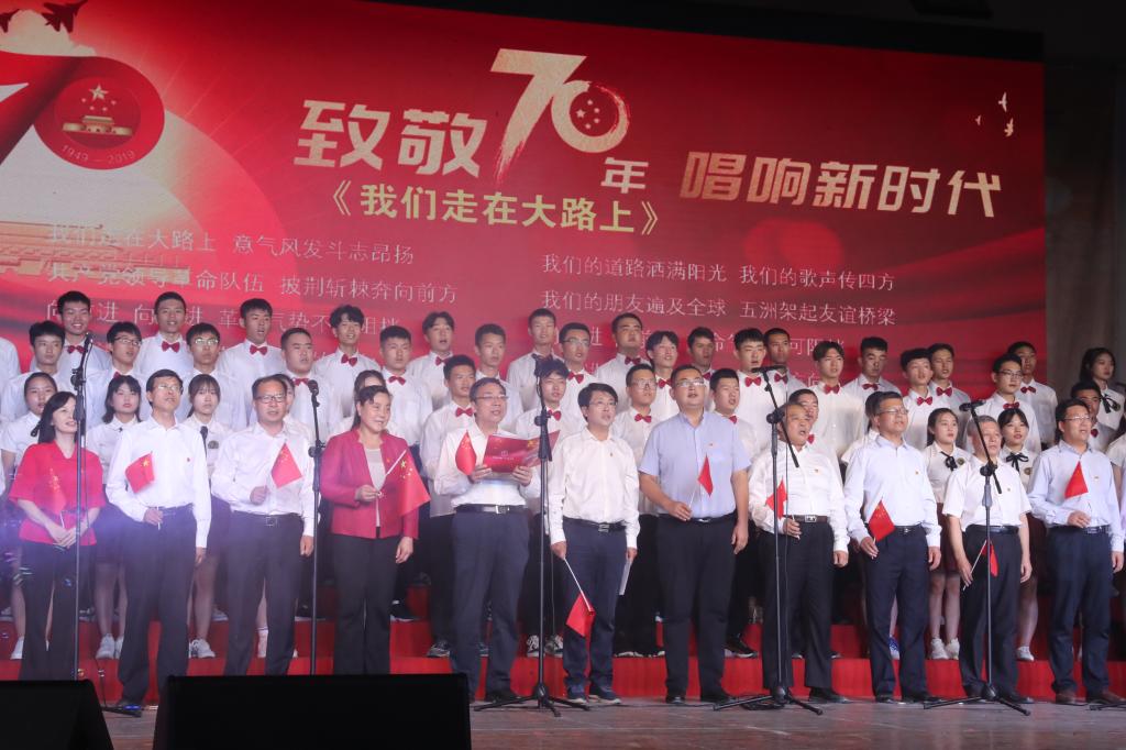 一首首鼓舞人心、催人奋进的歌曲,热情讴歌了伟大祖国七十年艰苦跋涉历经风雨沧桑,七十年不倦探索收获累累硕果。在活动中,各支队伍表演形式新颖独特,采用领诵、领唱、伴舞、伴奏等多种艺术形式,用歌声表达出西航人对党、国家和学校的由衷赞美和无比热爱,表现出西航人重任在肩、使命在心,与祖国共同走向复兴,创造辉煌的坚定信念。表演或慷慨激昂,或优美柔和,使在场的观众感慨万分、心潮澎湃,赢得了台下观众们阵阵掌声。活动最后,学校领导与师生们一同演唱了《我们走在大路上》。