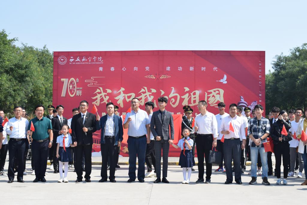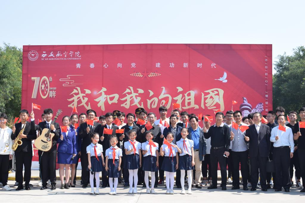 为庆祝新中国成立70周年,9月25日午时,贝博官网1000余名学生于阎良校区第一餐厅前十字路口处举办《我和我的祖国》快闪活动。此次活动由学校党委宣传部、学生工作部(处)、校团委、飞行器学院、“航空心翼”辅导员工作室、西安航空基地第一小学联合举办。校领导陈平社、曹庆年、刘谦、宋文学出席活动。