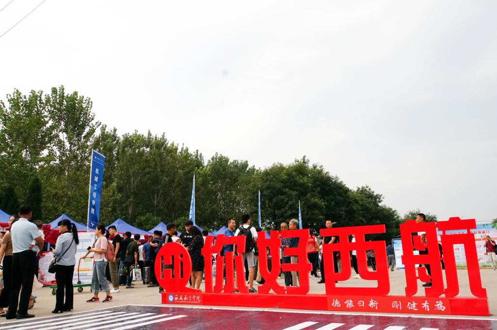 氛围营造特色突出。除常规的资助政策、易班海报、励志标语、立体字以外,学校新设置的特色长廊中风筝、风铃、白云、飞机跑道等元素,营造出航空特色意境。招生就业处学生通过就业单位展示、各学院利用特色工作展板开展宣传。新生签名墙、五彩手印绘板等留念活动让家长和新生们充分感受到学校的热情。