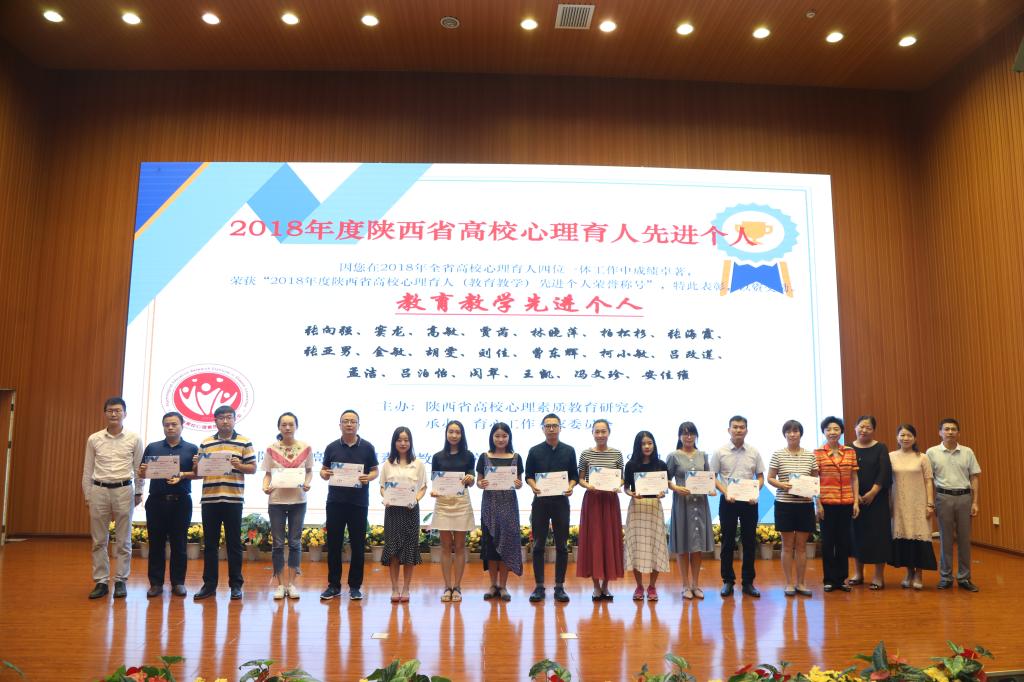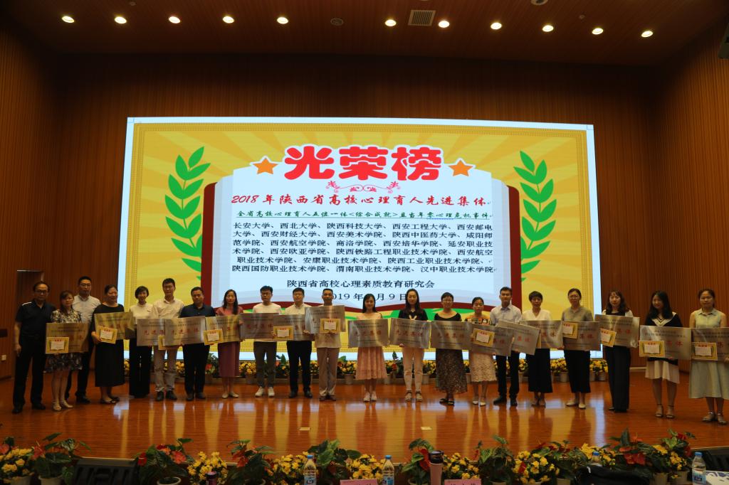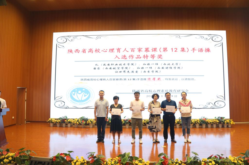 会议表彰了2018年度陕西省高校心理育人工作先进集体和先进个人。贝博官网荣获2018年度陕西省高校心理育人先进集体,胡雯荣获教育教学先进个人,文杰荣获咨询服务先进个人,李勇凯、董明月同学荣获陕西省百佳心理委员。在陕西高校心理育人宣传季系列活动竞赛中贝博官网荣获15个奖项。其中,由郭悦涵、胡雯指导的手语操作品《国家》荣获“陕西省高校心理育人百佳慕课手语操”特等奖;由李亚胜、王晓燕指导的心理情景剧《军鸿依梦》荣获“陕西省第三届心理情景剧大赛”一等奖;由樊梦云指导的心理微课《解开面具背后的你》荣获“陕西高校第四届心理健康优秀微课”二等奖;学校“航空心翼”战队荣获“陕西省第四届心理健康知识大赛”二等奖等。