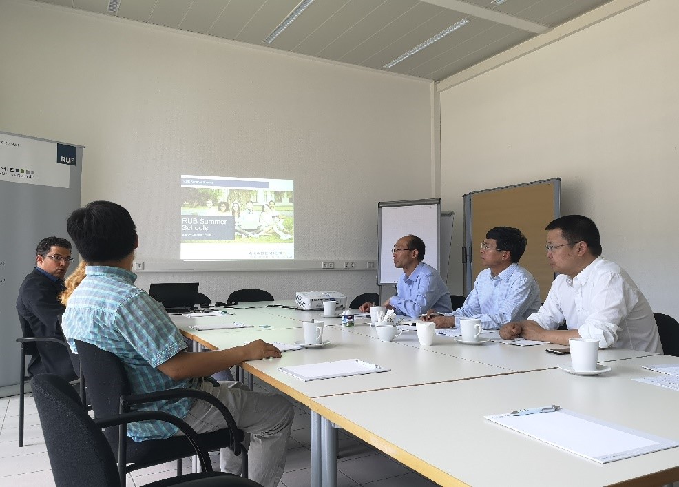 在波鸿大学,宋文学与国际学术交流中心主任Dr.Yves和国际学生负责人Selina女士进行会谈。Dr.Yves主任向代表团一行详细介绍了该校短期国际合作项目“夏季学校”实施情况,参加该项目的外国学生不仅可以学习相关专业知识,还可以通过参观活动了解到鲁尔区如何从煤矿工业转型为新能源、电子为工业主体的过程。代表团对该国际项目表现了浓厚的兴趣,就如何更有效推进贝博官网师生参与“夏季学校”及联合开展科学研究进行了深入探讨。
