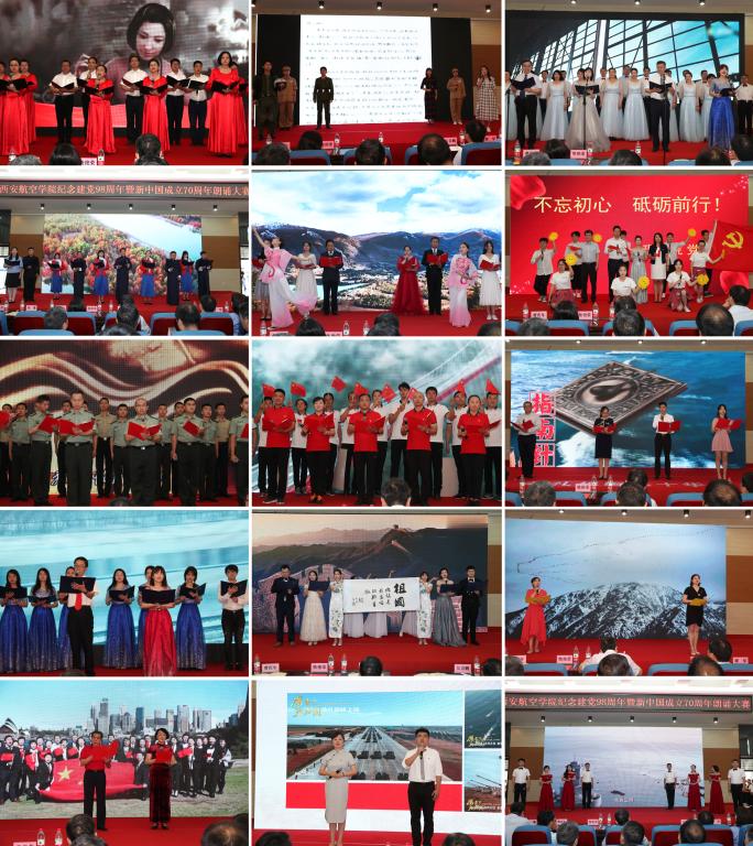 15支参赛队伍以“我和我的祖国”为主题,以饱满的精神和昂扬的激情朗诵了《信念永恒》《青春中国》《沁园春˙长沙》等一篇篇鼓舞人心、催人奋进的优秀诗篇,热情讴歌中国共产党团结带领全国各族人民实现伟大复兴中国梦的奋斗历程和辉煌成就,讲述西航人追梦奋斗征程中的闪亮瞬间。活动中,各参赛队伍创作和表演形式新颖,根据作品的时代背景和意境,采用领诵对诵、舞蹈、书法、武术、视频、歌唱等多种艺术形式,铿锵有力和感人肺腑的语言,表达了对党、国家和学校的由衷赞美和无比热爱之情,或慷慨激昂,或绘声绘色,让在场听众感慨万分、心潮澎湃,赢得了台下观众们阵阵掌声。