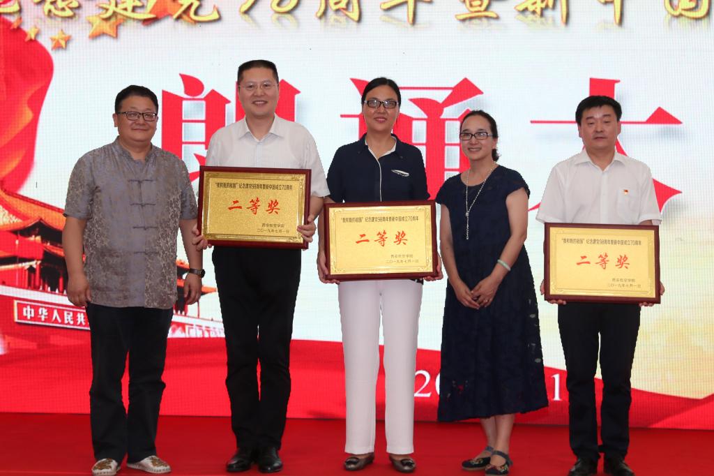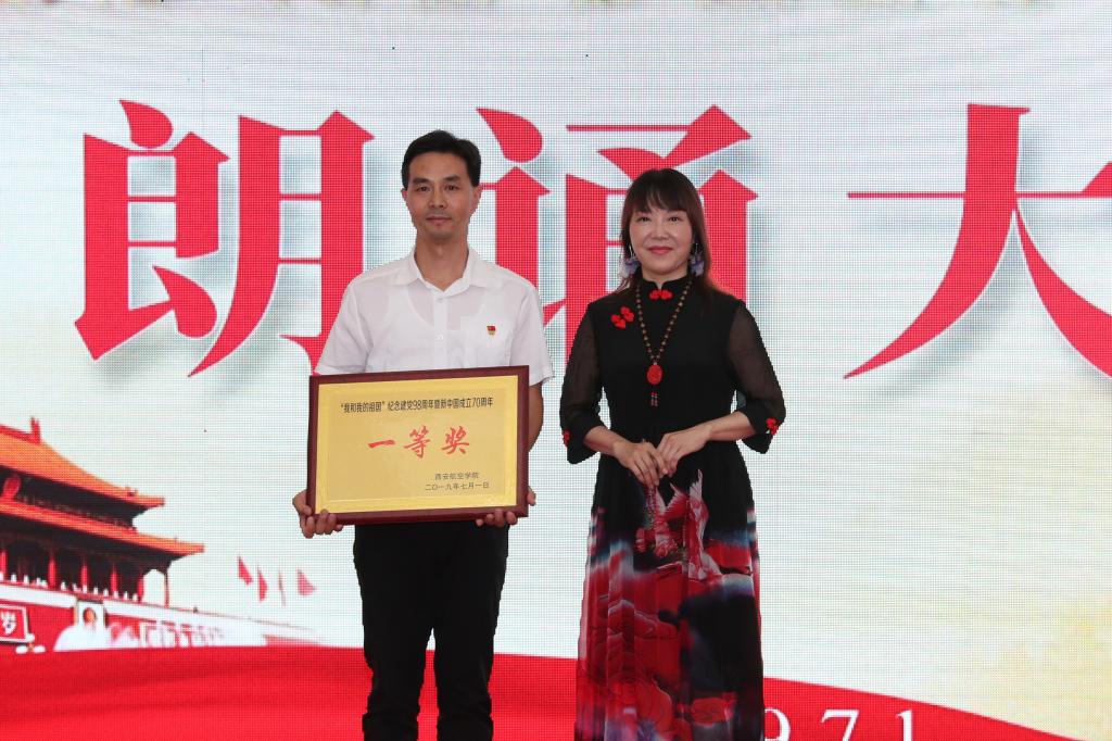 经过激烈角逐,材料工程学院党总支《我的西航,我的国》荣获一等奖,机关党总支《青春中国》、飞行器学院党总支《家书》、人文学院党总支《祖国啊,你就是我要唱的那首歌》荣获二等奖,经济管理学院党总支《读懂中国》、理学院党总支《等待》、离退休党总支《祖国颂》、机械工程学院党总支《沁园春˙长沙》、外国语学院党总支《中国奇迹》荣获三等奖,图书馆直属党支部《信念永恒》、能源与建筑学院党总支《赞美》、士官学院党总支《祖国在我心中》、车辆工程学院党总支《中华颂》、思政部直属党支部《我的南方与北方》、体育部直属党支部《祖国啊,我亲爱的祖国》荣获优秀奖。与会嘉宾分别为获奖单位颁奖。