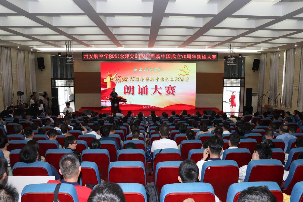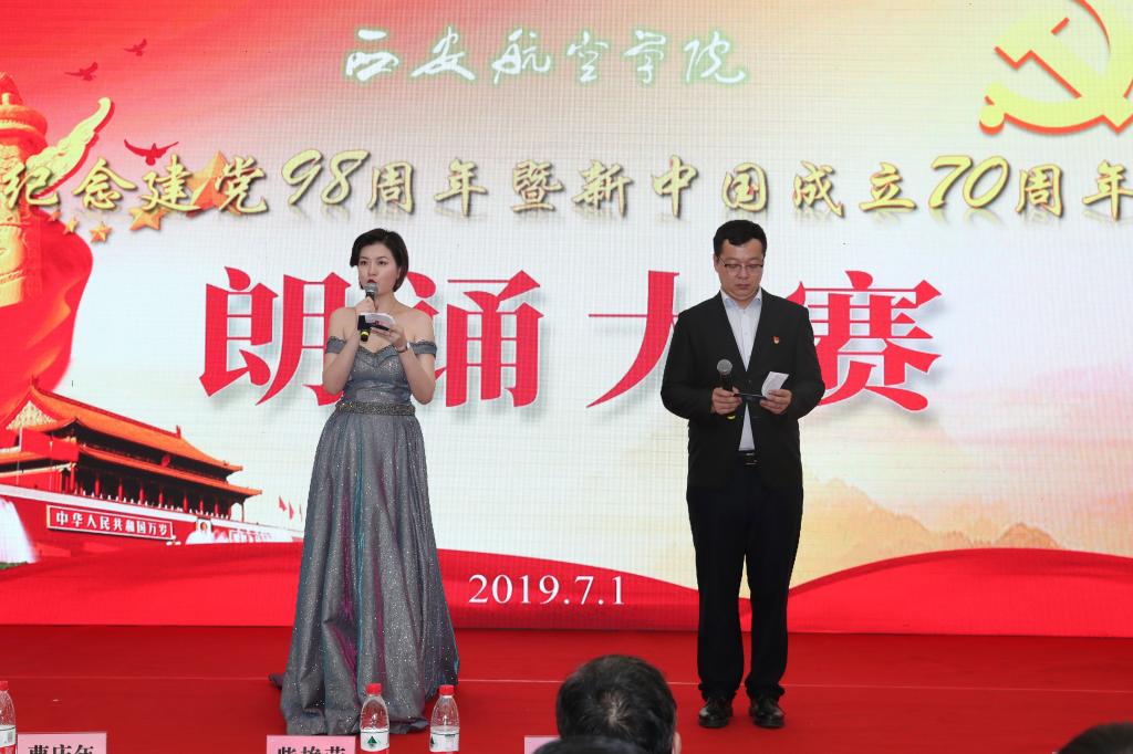 7月1日,艾弗森贝博ballbet官网庆祝建党98周年大会暨新中国成立70周年朗诵大赛在贝博官网阎良校区隆重举行。学校领导,各党总支、直属党支部委员,各党支部书记、师生党员代表等300余人参加。西安市阎良区区委常委、宣传部部长柴艳荣,西安阎良国家航空高技术产业基地发展规划局局长吴春鹏,航空工业职工艺术团副总导演师谭军,中国飞行试验研究院工会文体部部长王昭,航空工业第一飞机设计研究院工会办主任饶凡翔,中国戏剧文学学会会员、陕西省作协会员碑林路人,朗诵艺术家、九歌朗读会会长牛德让,长安大学文传学院教授孙希娟等应邀出席。活动由党委副书记谭少敏主持。