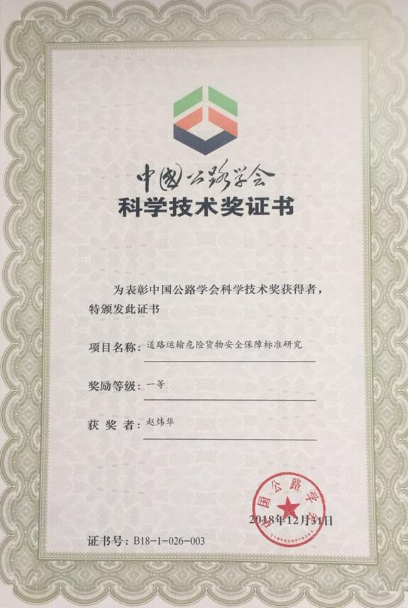 6月15日,专项活动中举行了2018年度中国公路学会科学技术颁奖大会,贝博官网赵炜华参与完成的课题“道路运输危险货物安全标准研究”获得中国公路学会一等奖。
