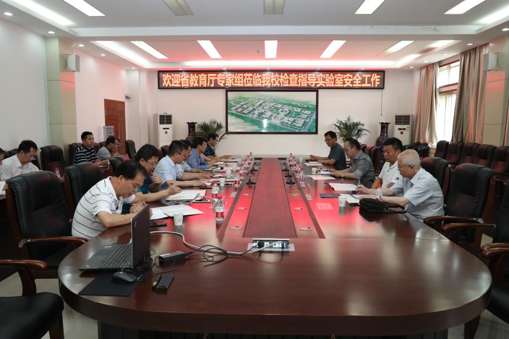 检查汇报会在学校沣惠校区九楼会议室举行,校长曹庆年,副校长宋文学、宁永录、金文,党政办公室、教务处、保卫处、校办工厂、液压研究院、各二级学院负责人等参加会议。会议由宁永录主持。