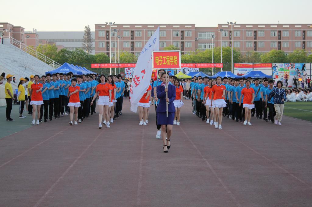 4月11日至12日、18日至19日,贝博官网第四十四届运动会在两个校区田径场隆重举行。校领导陈平社、曹庆年、谭少敏、李季、宋文学、宁永录,及相关部门负责人出席开、闭幕式。万余名师生参加了运动会。沣惠校区于11日上午开幕,阎良校区于18日上午开幕,陈平社书记、曹庆年校长分别致开幕词。运动员及裁判员代表分别宣誓。在彩旗方阵的引领下,国旗护卫队、裁判员方阵、各学院方阵迈着整齐的步伐,喊着响亮的口号,踏着激昂的乐点依次入场。校航模队、健美操队、广播操队及各二级学院编排的节目,分别在开幕式上进行了精彩的表演。