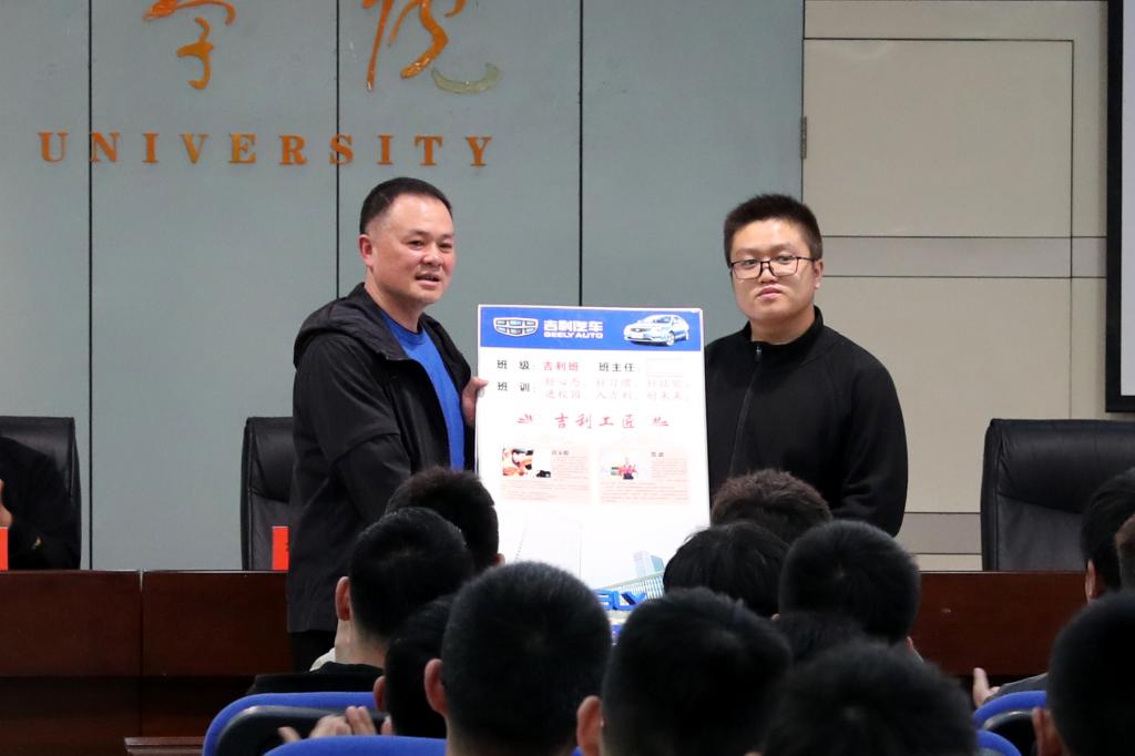 宋文学和张锐代表艾弗森贝博ballbet官网和吉利控股集团签订《校企合作协议》并互授牌匾。吉利控股集团校企合作西北大区经理李智勇向贝博官网授“吉利班”班牌。与会嘉宾为吉利“成蝶计划”奖学金和“吉时雨”助学金获得者颁奖。张敏同学带领全体学生宣誓,“吉利班”学生代表王璟同学发言,表达了立志努力学习的决心。