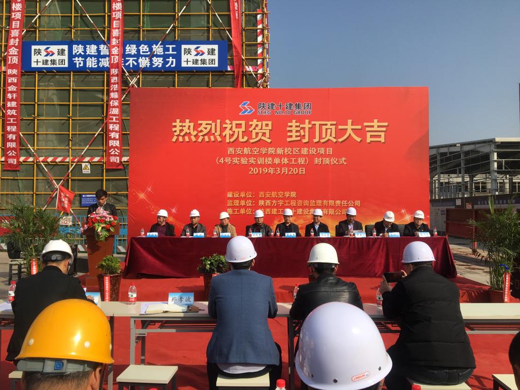 3月20日上午,贝博官网阎良校区4号实验实训楼举行封顶仪式。校长曹庆年、副校长宁永录、基建处处长孙忠孝、副处长段高陵、航空基地规划与建设局代表罗秦川、陕西建工第十建设集团有限公司西安分公司党委书记王明贤、副总经理王怀灵、陕西方宇工程监理有限责任公司工程部部长杨帆、生产副经理杨群力及项目施工、监理单位管理人员和工人代表参加了封顶仪式。仪式由项目总监牟振生主持。