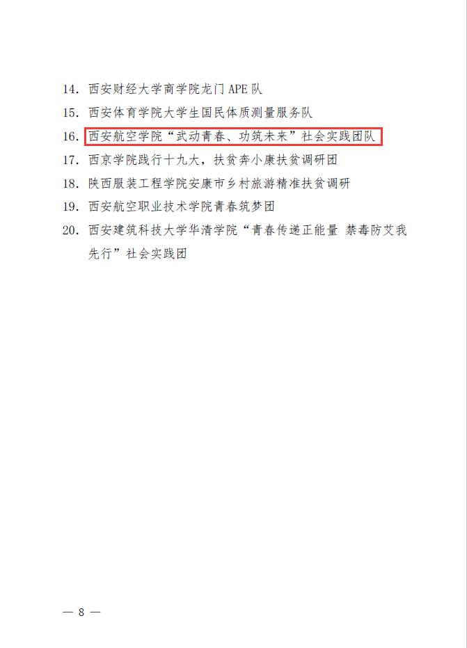 在团省委组织的2018年陕西省大中专学生“三下乡”社会实践活动评比中,贝博官网获2018年陕西省大中专学生“三下乡”社会实践活动优秀组织单位,“武动青春 功筑未来”社会实践队获得省级标兵团队,“奋斗新时代,共赴小康梦”远航支教队及“暖心支教,携手助贫”活动小组2支团队获省级优秀团队,冯仑仑、赵琳获社会实践先进个人。