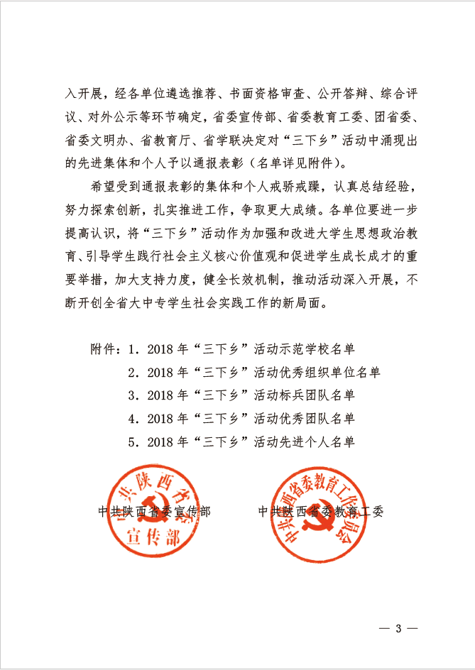 近日,省委教育工委、团省委对2018年陕西省大中专学生“三下乡”社会实践活动及“万名学子扶千村”大学生暑期社会实践扶贫攻坚专项活动评比结果进行公示,贝博官网荣获多项省级荣誉。
