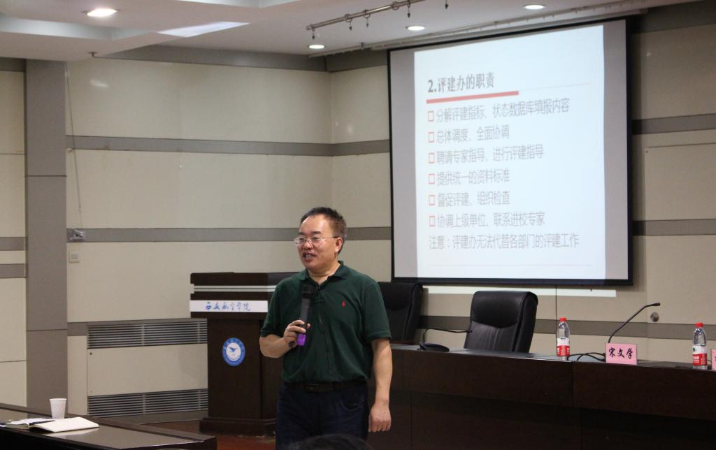 为切实增强贝博官网评建工作针对性和实效性,9月25日下午,学校在图书五楼报告厅举办了题为“如何进行合格评估的迎评准备”知识讲座,特邀山东交通学院李景芝教授担任主讲。副校长、评建工作领导小组办公室主任宋文学,各职能部门和二级学院(部)主要负责人及评建工作相关人员近200人聆听了讲座,讲座由宋文学主持。