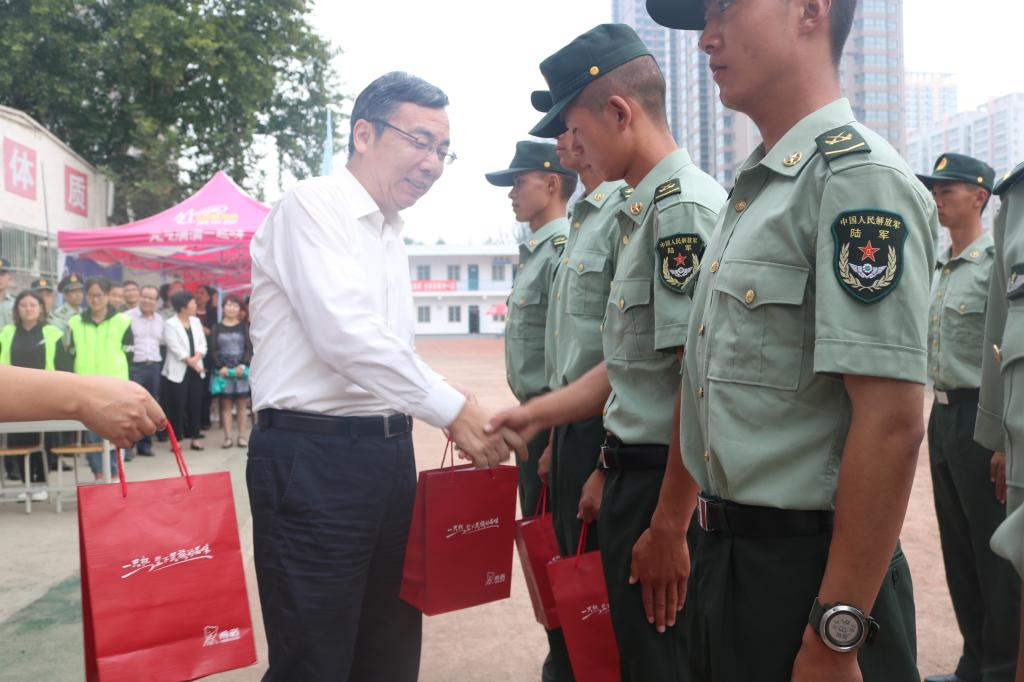 9月14日上午,校领导陈平社、刘谦、宋文学来到两校区训练场,慰问2018级军训团全体参训师生和承训部队官兵。党政办、宣传部、学工部、教务处、后勤保障处、保卫处负责同志以及各二级学院负责人一同参加慰问。