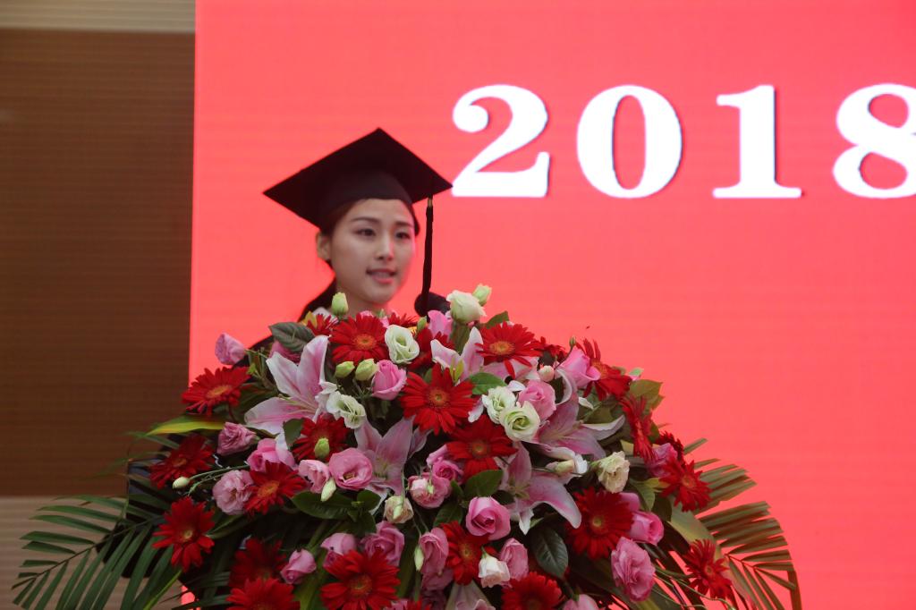 毕业生代表、电子工程学院测控技术1815班梅晨阳同学代表毕业生发言,她深情的表达了对母校的感恩和不舍,对老师、同学的感激和祝福。她说,作为一名西航学子,一定会秉承西航“德能日新、刚健有为”的校训精神,积极进取、努力拼搏,用自己的所学所能回馈社会、回报母校。