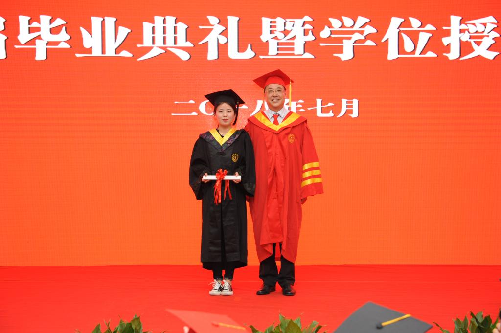 校长曹庆年为各学院代表颁发了毕业证书,为毕业生代表一一拨正流苏、授予学士学位证书,并合影留念。