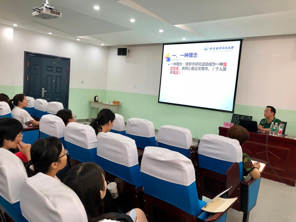 6月22日下午,北京航空航天大学外国语学院博士生导师、教授文军应贝博官网外国语学院的邀请,为师生作了“论文发表与项目申报漫谈”的专题讲座。