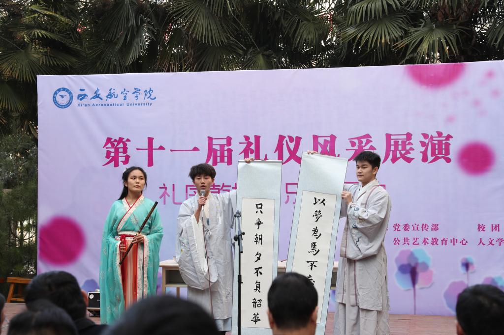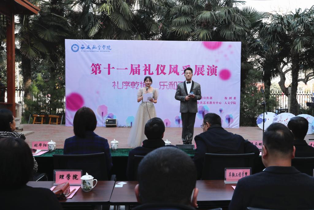为推动贝博官网美育教育,传播礼仪之风,促进校园文化建设,11月25日,由党委宣传部、校团委、公共艺术教育中心、人文学院共同主办的第十一届“礼序乾坤,乐和天地”礼仪风采展演活动在莲湖校区成功举办。党委副书记刘谦,副校长宋文学,党委宣传部部长李永刚、校团委书记雷颖颐、公共艺术教育中心主任刘华阳、学生工作部(处)副处长仇建华,莲湖校区二级学院负责人及部分师生参加了活动。